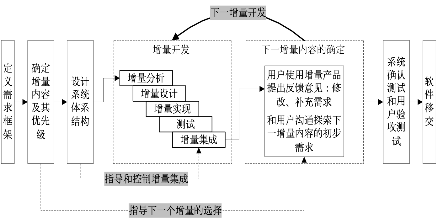 - 增量式集成方式:首先对一个个模块进行模块测试,然后将这些模块逐步组装成较大的系统,在组装的过程中,边连接边测试,以发现连接过程中产生的问题。最后通过增殖逐步组装成为要求的软件系统