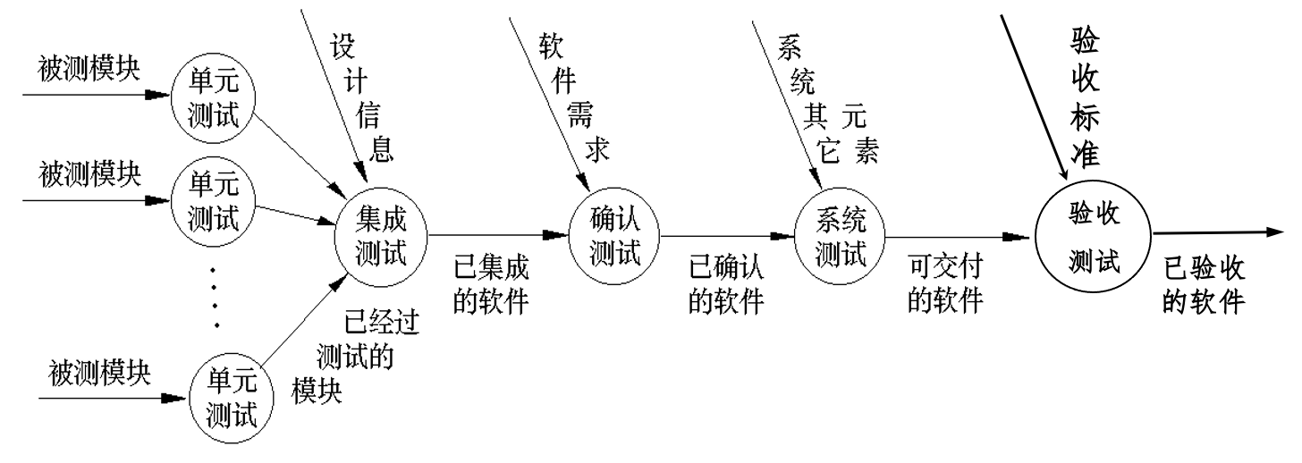 软件测试过程包括单元测试、集成测试、确认测试、系统测试和验收测试