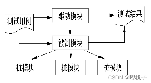 桩模块(stub):也叫做存根模块,用以代替被测模块调用的子模块。
