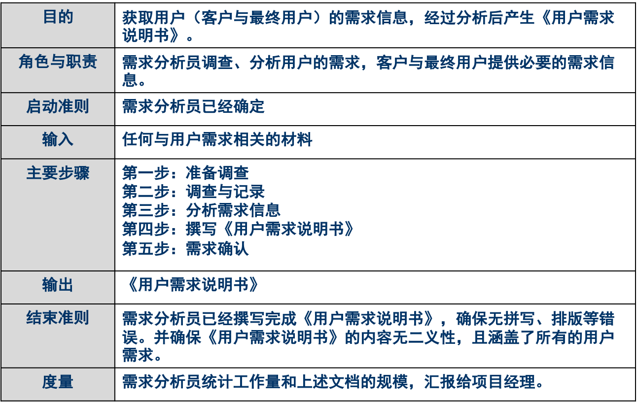 ② 需求分析和定义:对待开发软件提出的需求进行分析并给出详细的定义。编写出软件需求说明书及初步的用户手册,提交管理机构评审。