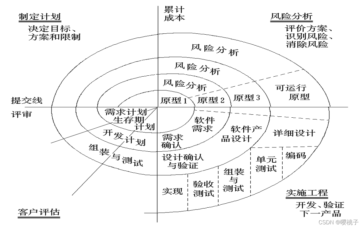 ⑵ 模型的风险控制能力较弱。成品时间长;体系结构的风险和错误只有在测试阶段才能发现,返工导致项目延期。