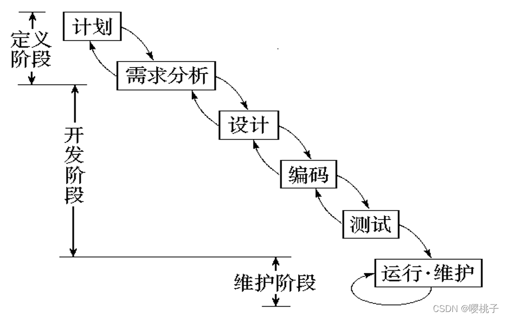 ⑤ 软件测试:在设计测试用例的基础上检验软件的各个组成部分。
