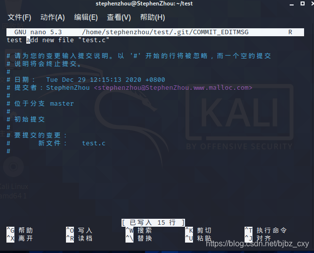 在按下回车,就会提示已写入,用#是注释,不会被提交,git会自动过滤