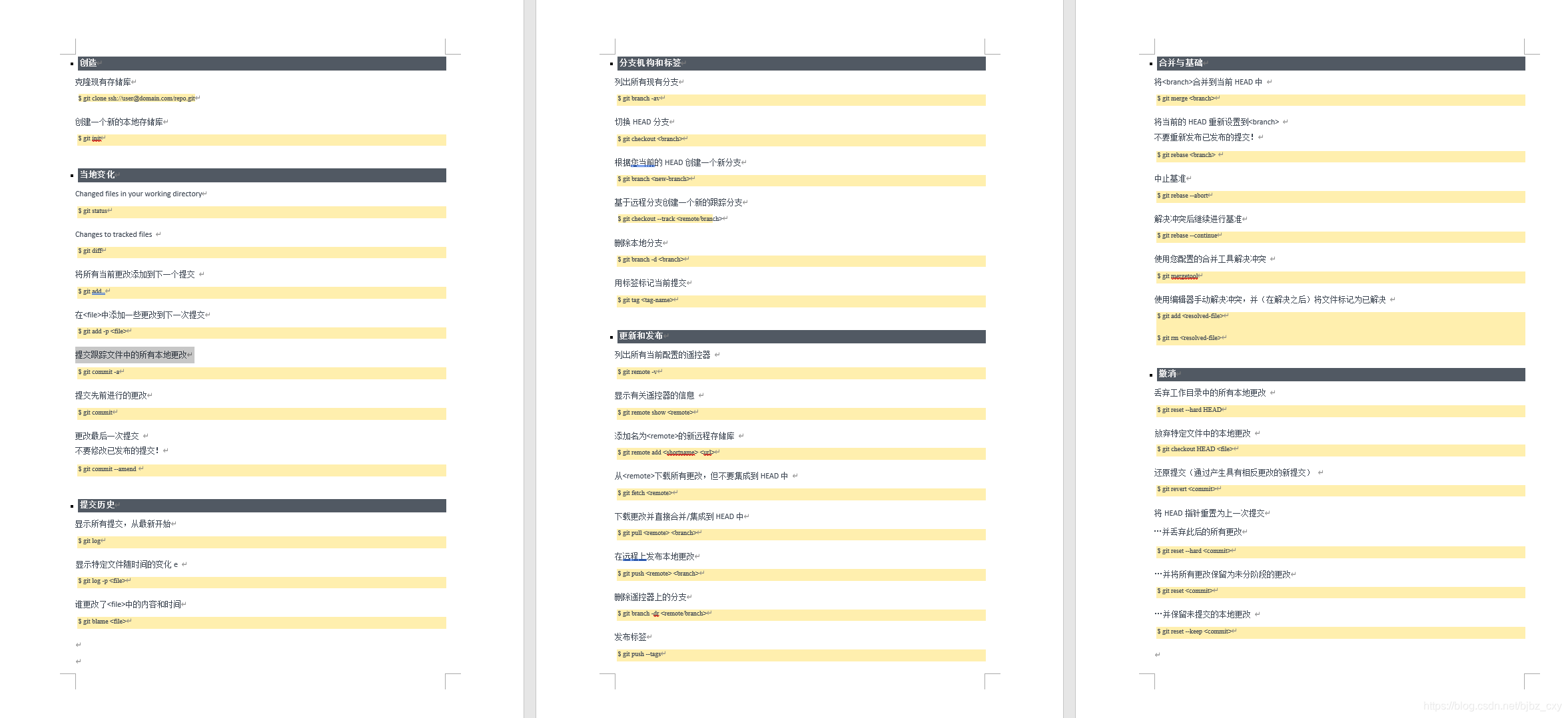 同时本篇文章也积累了很多博主在工作开发中包括自己日常开发中都用到的一些git技巧,在本文的最后整理了一份关于git的常用命令表。
