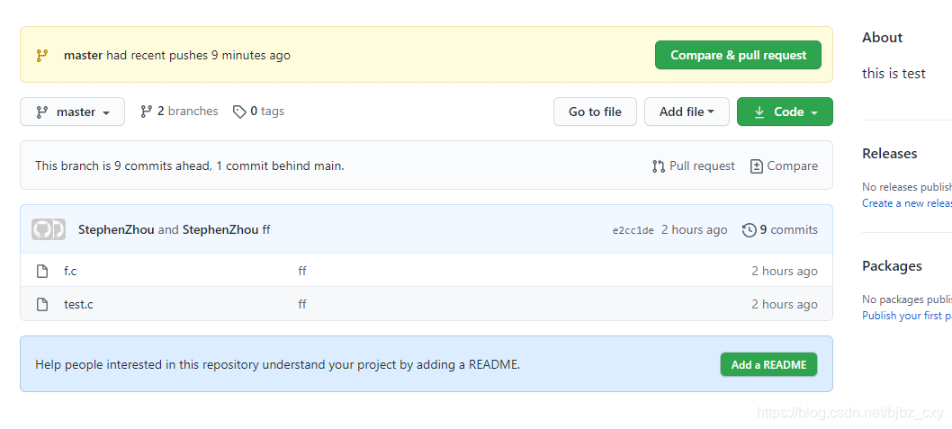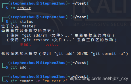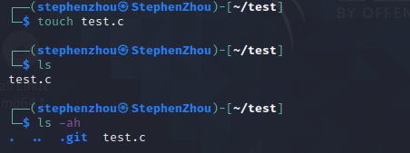 用我刚刚上一节所创建的空仓库test为例,我们用touch命令新建一个文件,名为test.c