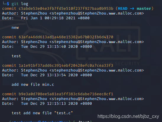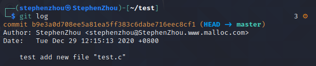 正如刚刚改写提交的,想要确定是否改写成功,我们可以使用git log查看一下