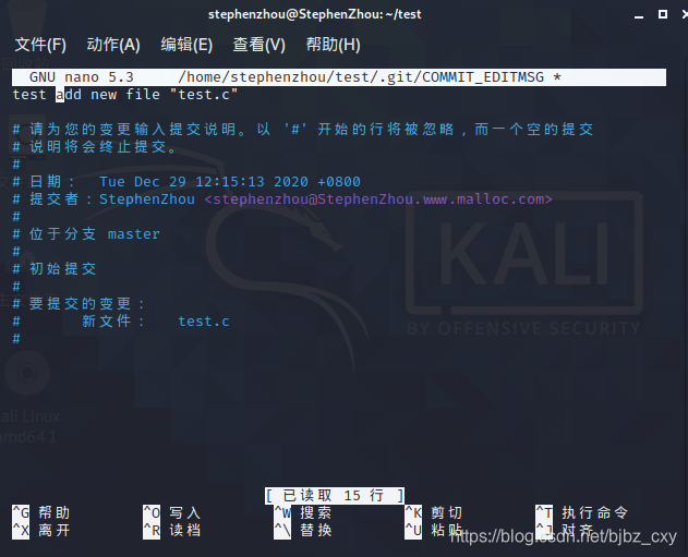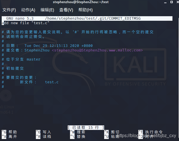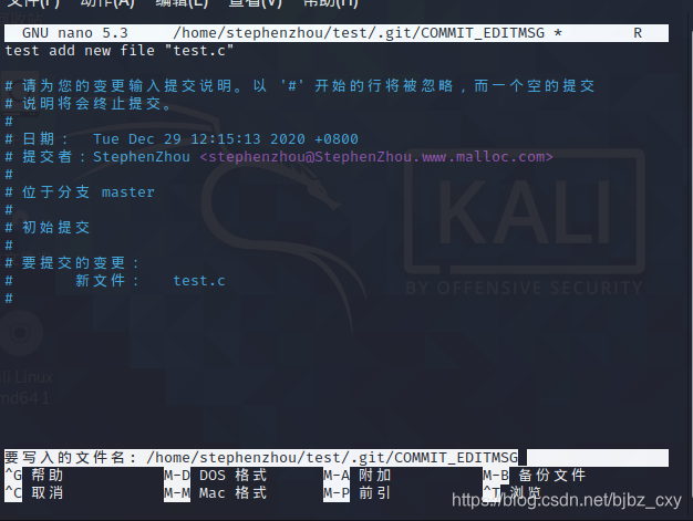 我们需要使用-m命令来简写描述我们的信息,如果不使用-m,会调用终端的注释编辑器让你输入描述信息,但是不建议使用,因为注释编辑器比较难用,不舒服。
