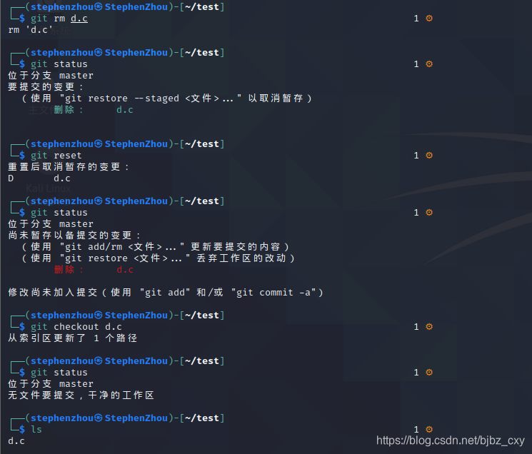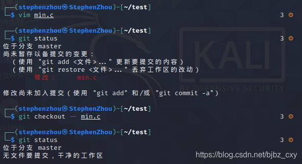 将文件撤销回到最近一次修改的状态:git checkout – file