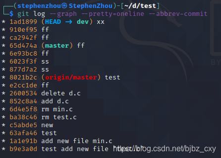 第一行的commit是哈希算法算出的id,正如一开始所说,分布式是没有一个主版本号的,它们都是用id来做标志的,同时用master作为主仓库,其它的分支怎么迭代都不会影响到master,后面我会介绍如何使用分支