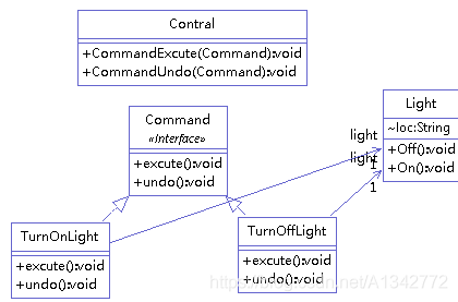 代码举例(开灯和关灯),类图如下: